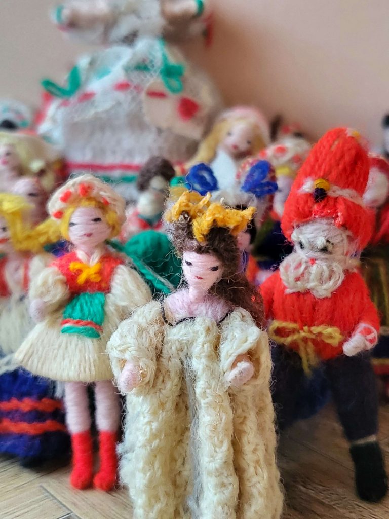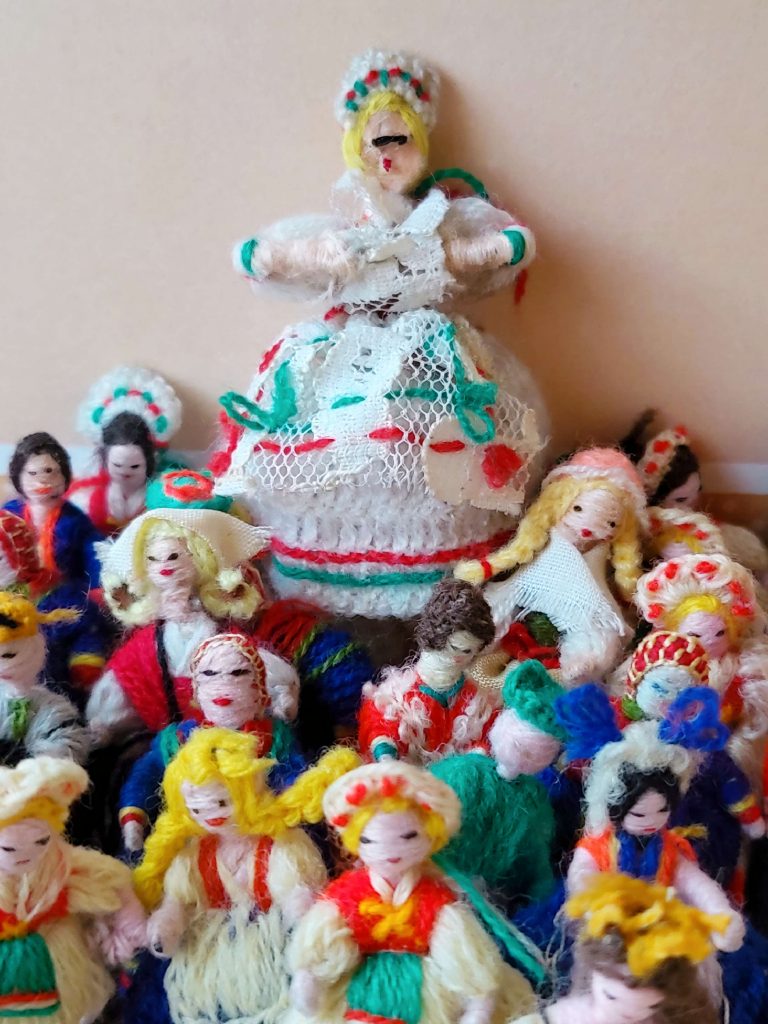 A kollekcióban azonban számos popkulturális ikon – köztük Háry János és Donald kacsa apró, cérnából készített figurája – sportoló, és más népek viseletébe öltöztetett baba is megtalálható.