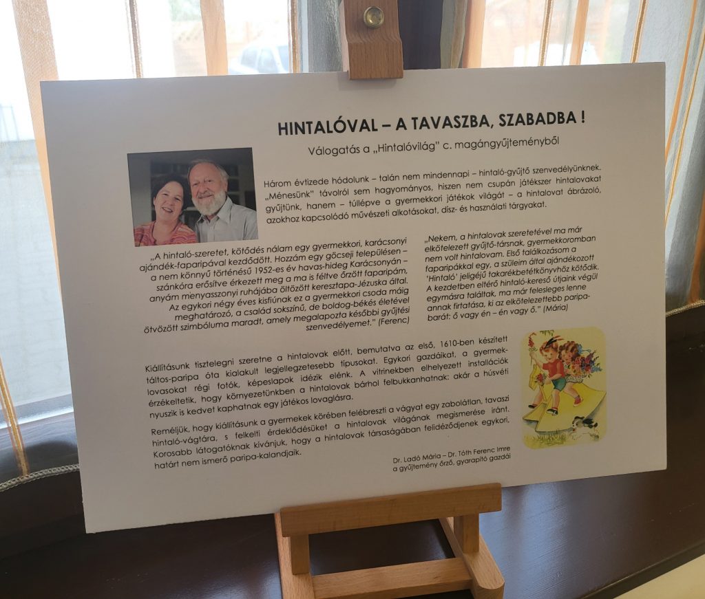 Képes beszámoló Dr. Ladó Mária és Dr. Tóth Ferenc Imre HINTALÓVILÁG nevű magángyűjteményének tordasi kiállításáról. Hintalovon – a tavaszba, a szabadba!, Hangya Művelődési Ház, Tordas, 2023.